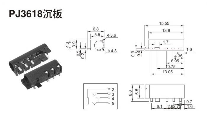 耳機插座/PJ3618沉板貼片本產品廣泛用于,玩具,電動玩具,玩具公仔,防盜器,家用電器,手機數碼,電子通訊,電子游戲機,汽車防盜,智能化系統,電視機、MP3、耳機,等電腦通訊器材