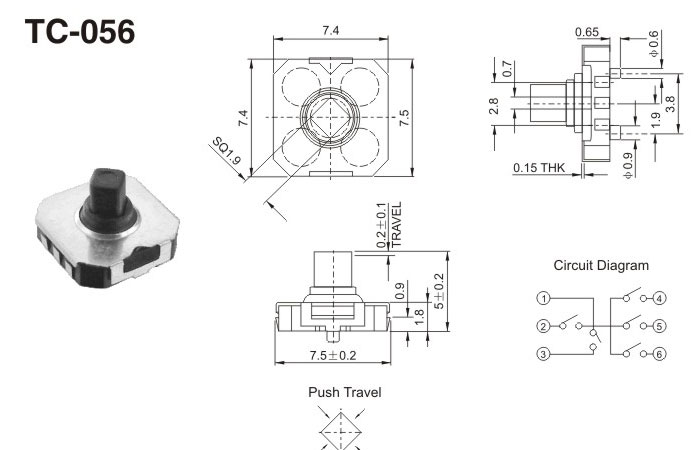 五項開關/TC-056本產品廣泛用于,玩具,電動玩具,玩具公仔,防盜器,家用電器,手機數碼,電子通訊,電子游戲機,汽車防盜,智能化系統,電視機、MP3、耳機,等電腦通訊器材