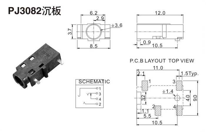 耳機插座PJ3082沉板